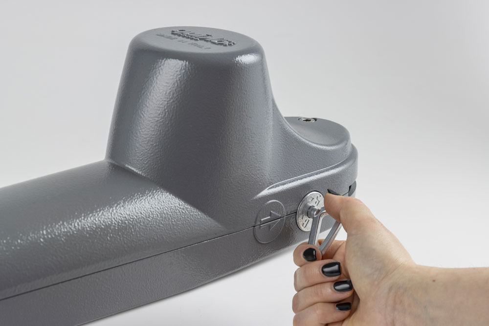Elektrik kesintisi durumunda, anahtarla çalıştırılan manuel serbest bırakma sistemi, kullanıcının kanatlı kapı açıcıların kilidini açmasına ve kapıyı manuel olarak hareket ettirmesine olanak tanır.