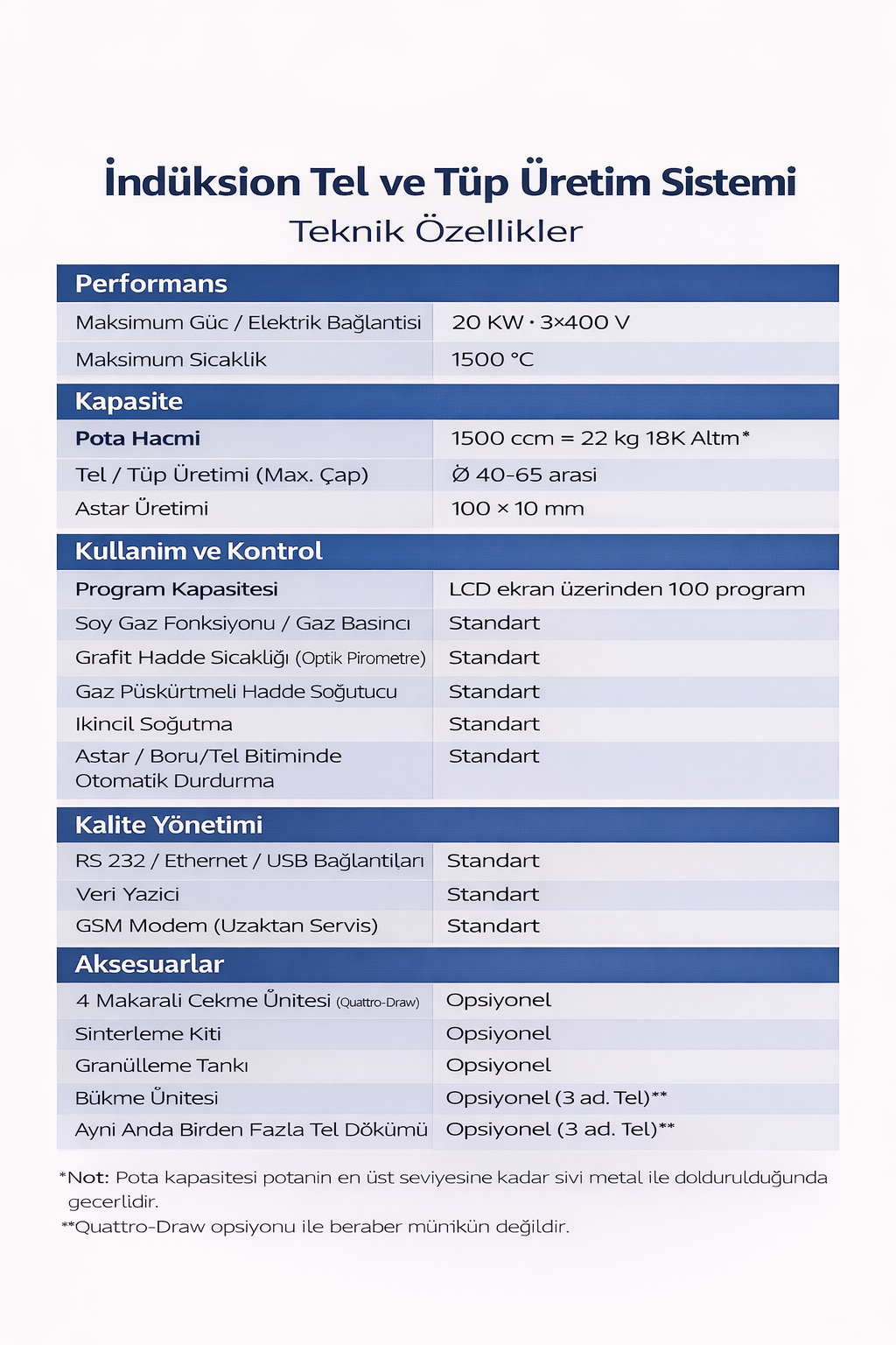 *Tel, astar ve tüp, özel profiller gibi yarı-mamullerin tamamıyla homojen yapıda üretimini sağlar.