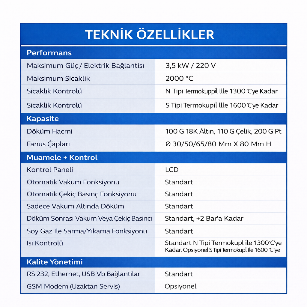Tüm döküm süreci, ciddi bir teknik ön bilgi gerektirmeden basit, hızlı ve güvenli şekilde gerçekleştirilebilir.