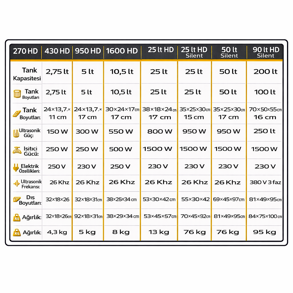 Yeni “HD” Ultrasonik yıkama cihazları her türlü yüzeyde ( kompleks, çarpık dahil ) derin ve köklü bir temizlik sağlayan dayanıklı cihazlardır. Tüm modeller yüksek kalitede üretilmiş uzun ömürlü ve yüksek performanslı cihazlardır.